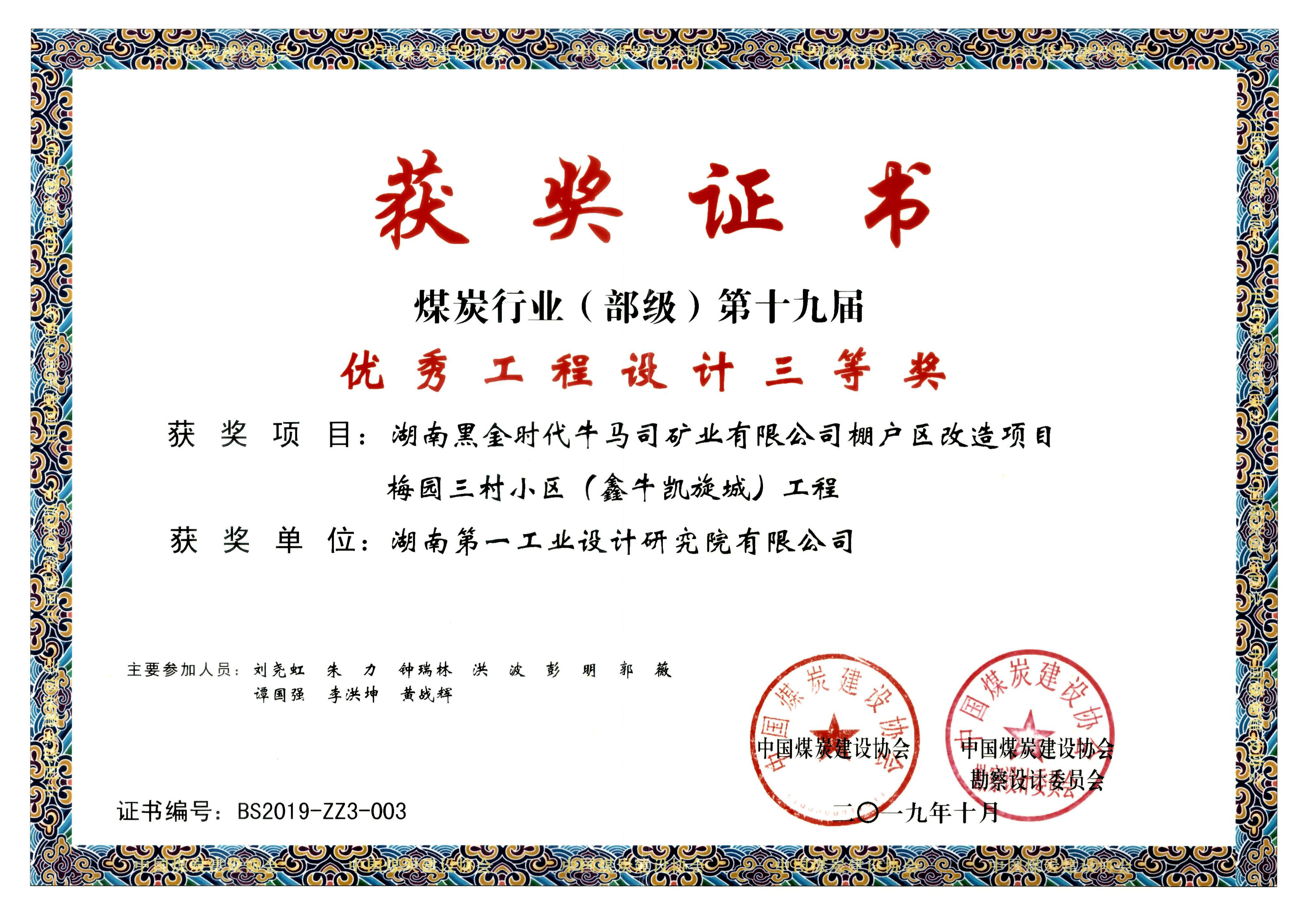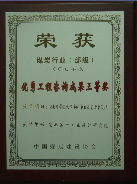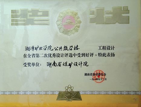湖南省優(yōu)秀設(shè)計表揚(yáng)金獎(1984)